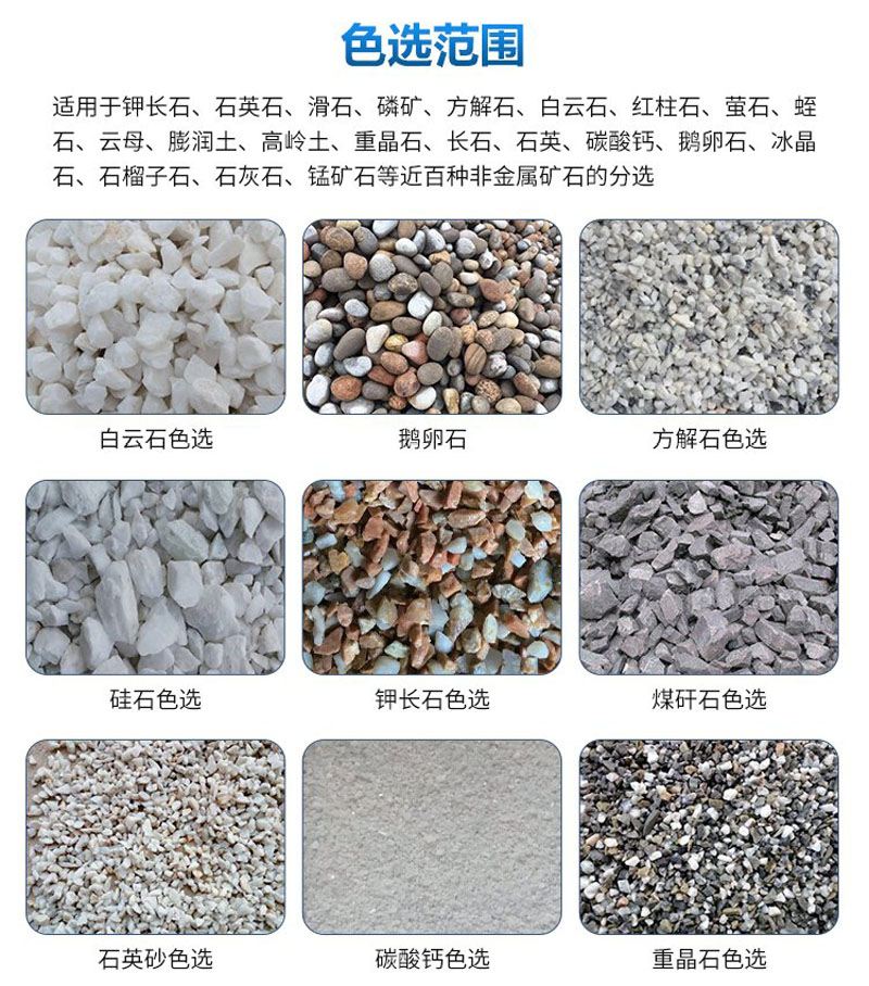 寶石色選機可應于寶石、金剛石、石榴石、重晶石、石英石、冰晶石等等礦物的分選,采用彩色ccd圖像獲取系統(tǒng),實現(xiàn)物料紅、綠、藍三種顏色信息的獲取,具有人眼的感覺能 ,物料的選擇更真實。